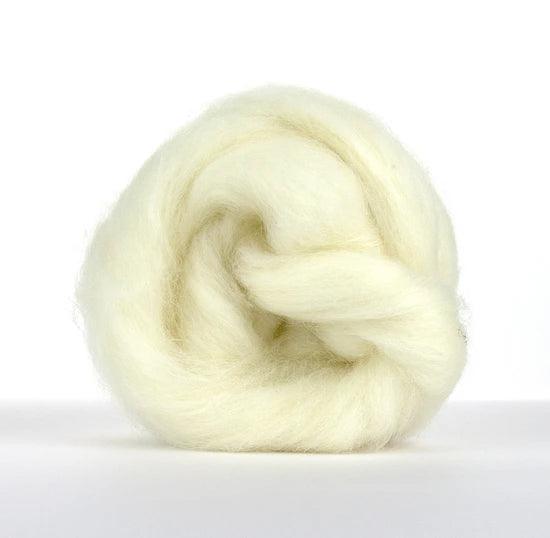 All Rounder! This bright white Perendale has long fibers and is a great choice for hand dyeing, felting, and spinning!